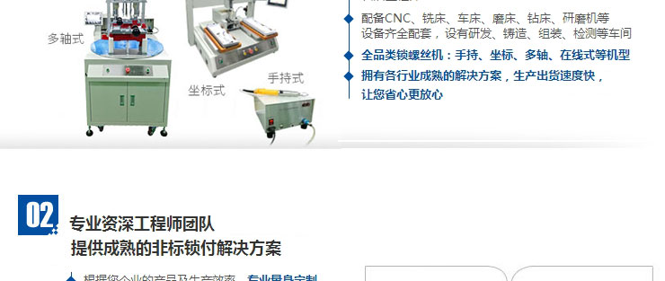 - 產品簡介:作業員不停放置產品,設備不停擰螺絲,增強了人機協作,較大幅度提升效率,減輕人工勞動強度。