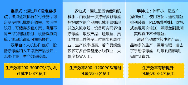 - 產品簡介: 雙平臺坐標式螺絲機取螺上螺系統可同時進行取螺、上螺,并自動完成鎖緊動作,自動化程度高,定位效果精度高,使用簡單、方便、快捷,大幅度提高生產效率。