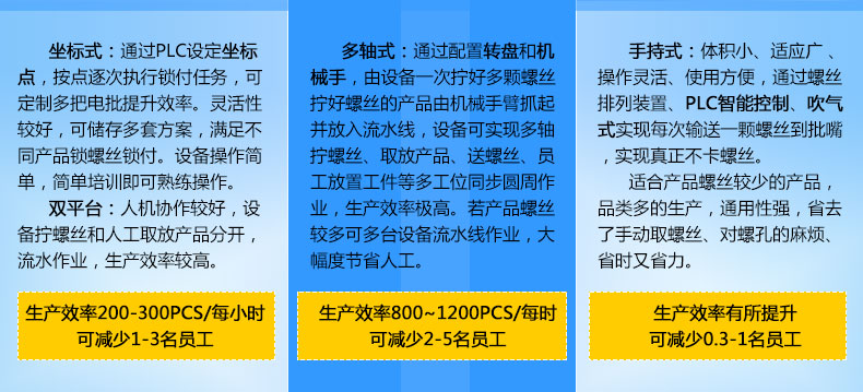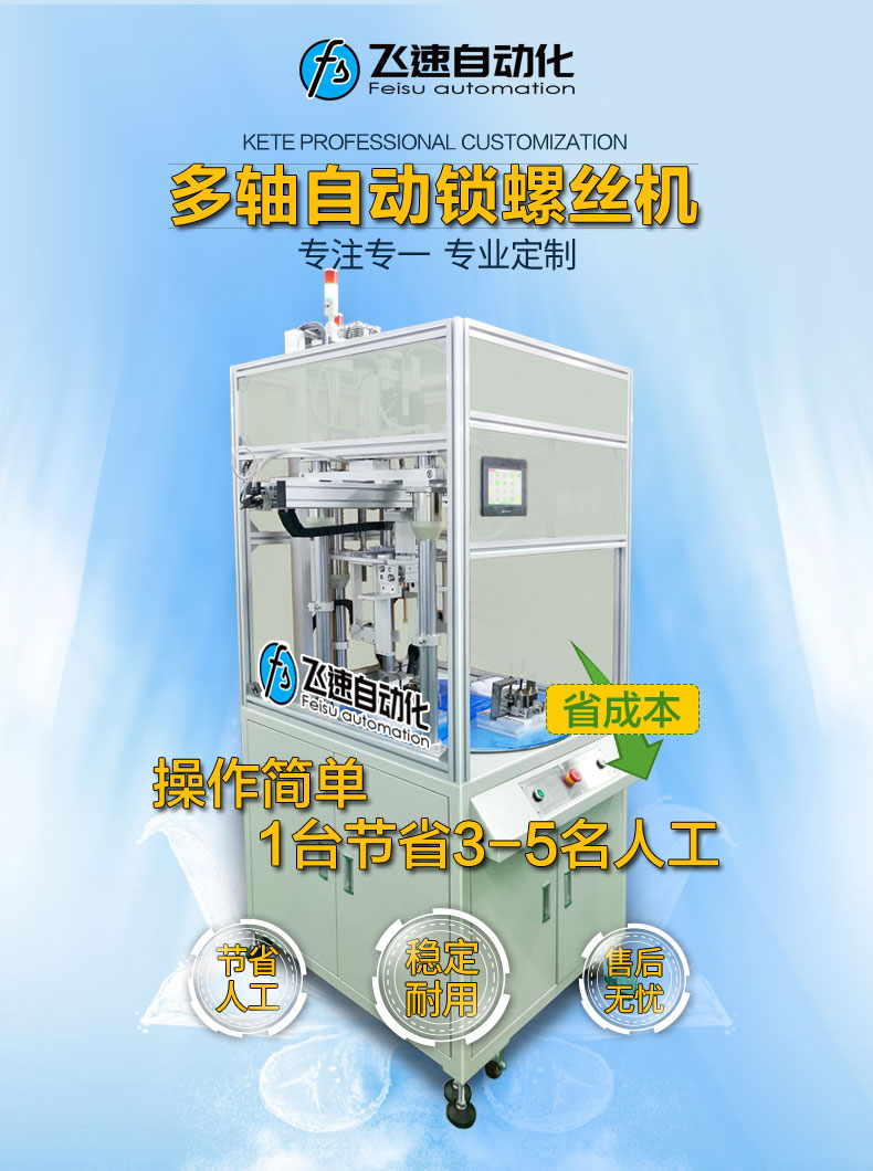 - 產品簡介: 膠件自動鎖螺絲機,該款采用多軸式,每秒可以同時鎖四個膠件,極大提高了生產效率