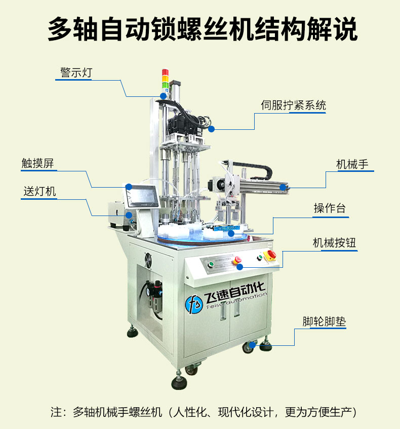 - 產品簡介: 該款自動打螺絲機,可以加散熱風扇連同墊片一起打螺絲,節省企業擰螺絲的時間,快速提升了產品生產效率。